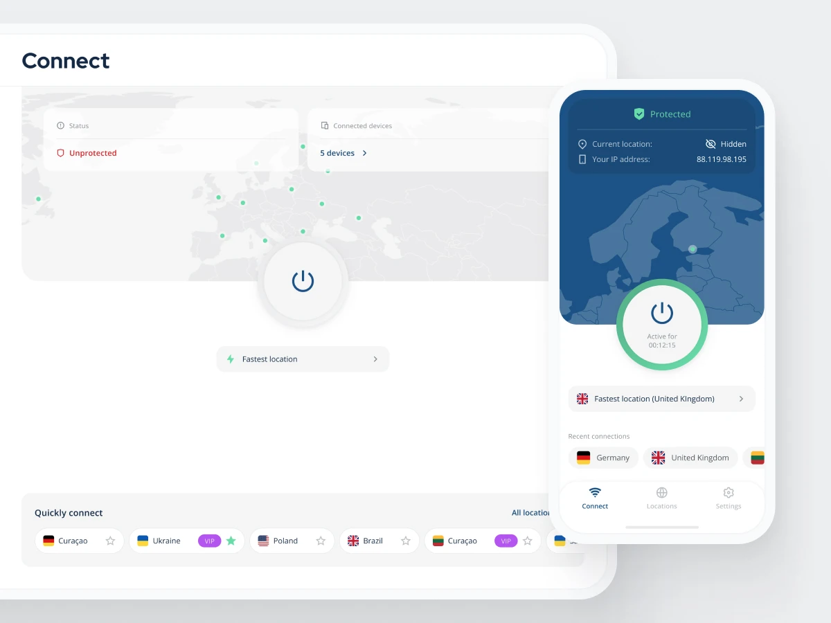 VPN uses an encrypted connection between your device and the VPN server, making your data unreadable to any third party that might try to intercept it. It also hides your real IP address so that you can protect your privacy and identity online.